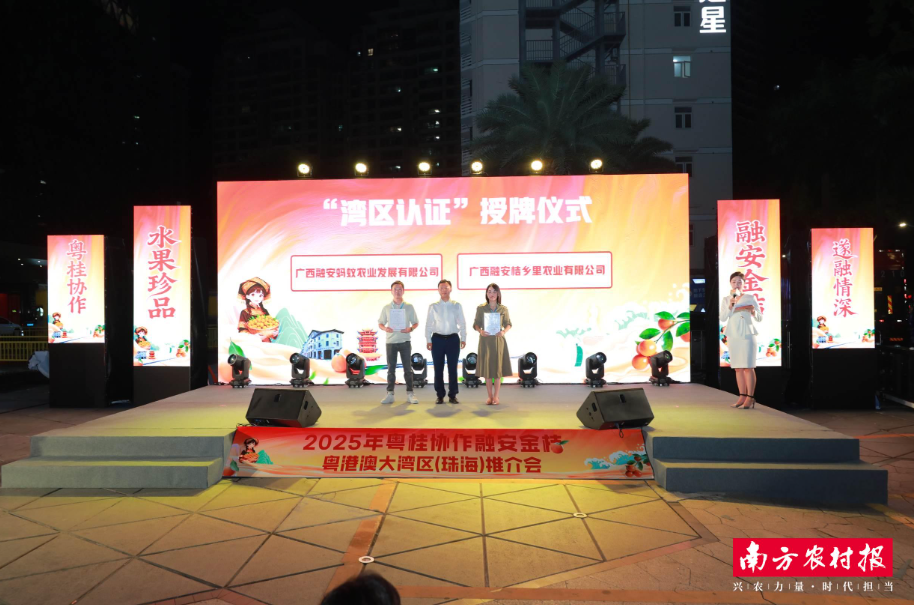 广西融安蚂蚁农业发展有限公司、广西融安桔乡里农业有限公司获颁“湾区认证”证书。